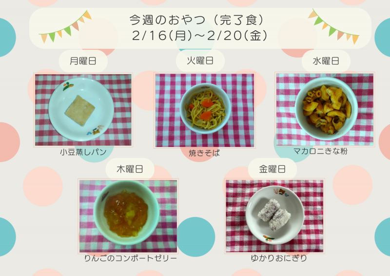 今週のおやつ2/16(月)~2/20(金)【完了食】