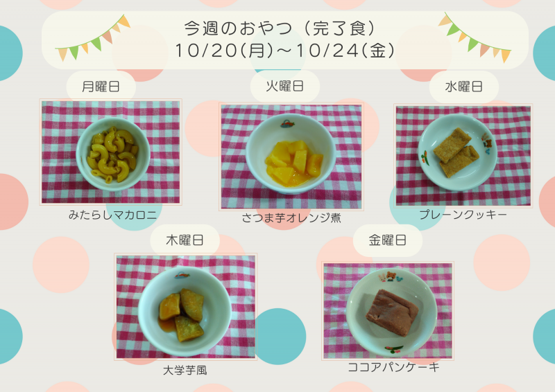 今週のおやつ10/20(火)~10/24(金)【完了食】