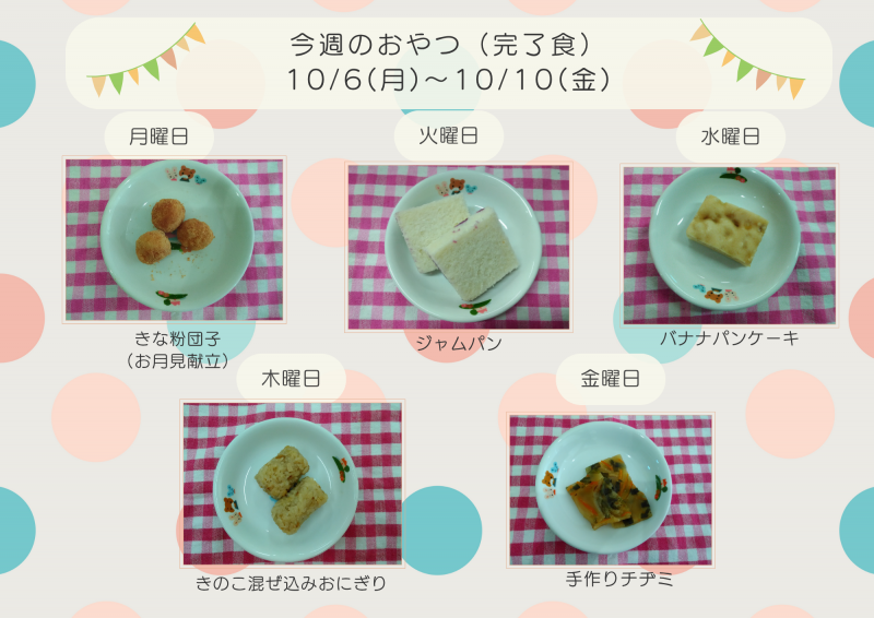 今週のおやつ10/6(月)~10/10(金)【完了食】