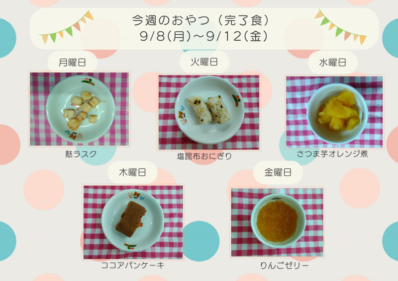 今週のおやつ 9/8(月)~9/12(金)【完了食】