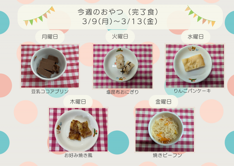 今週のおやつ 3/9(月)~3/13(金)【完了食】