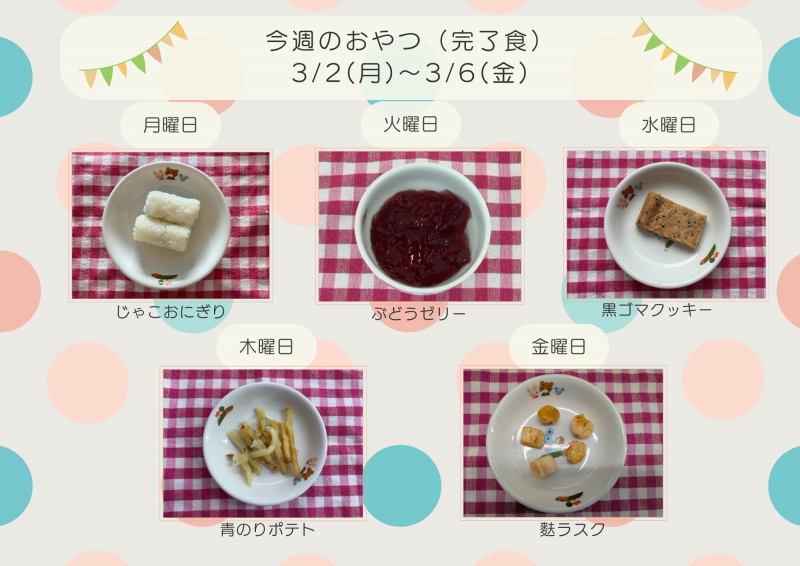 今週のおやつ 3/2(月)~3/6(金)【完了食】
