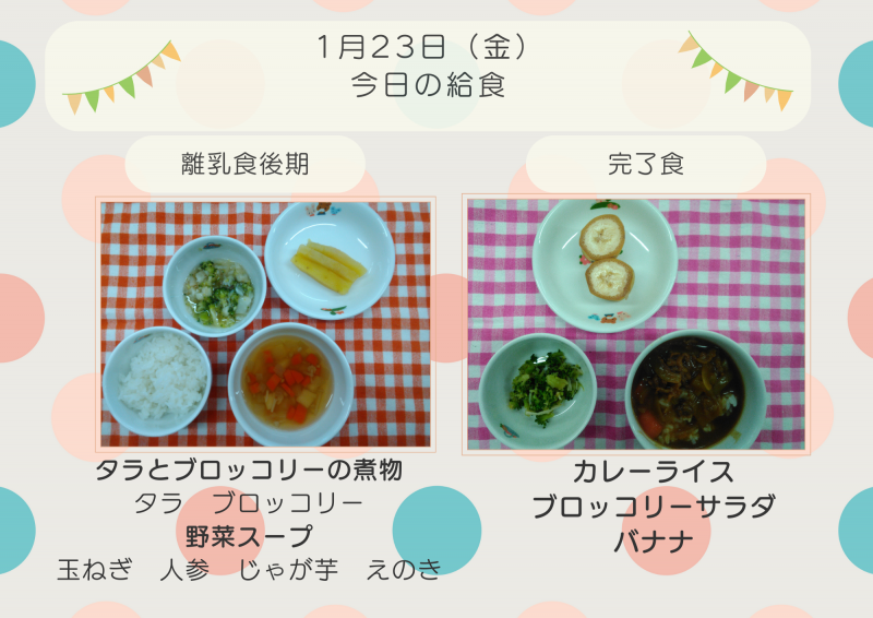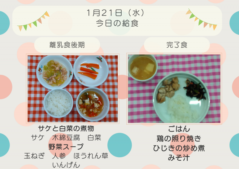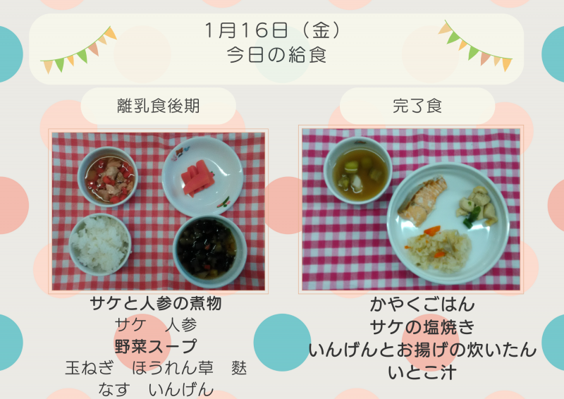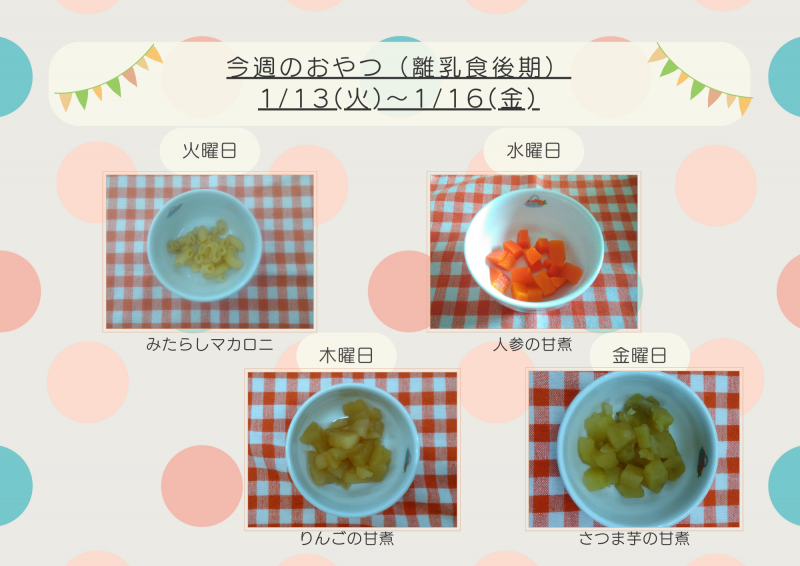 今週のおやつ1/13(火)~1/16(金)【離乳食】