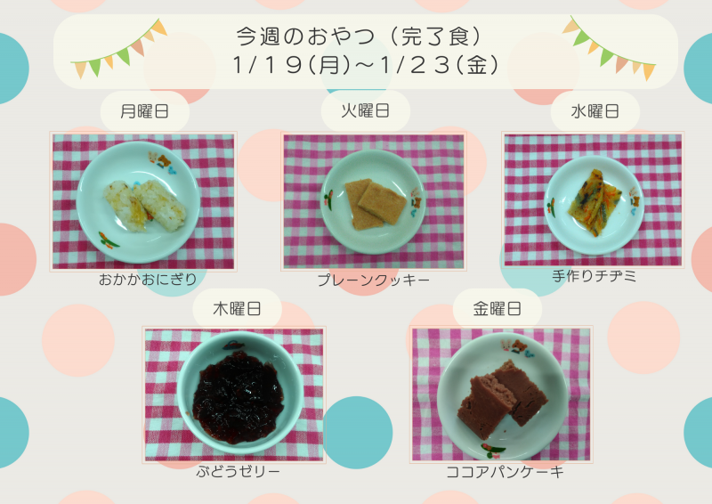 今週のおやつ1/19(月)~1/16(金)【完了食】