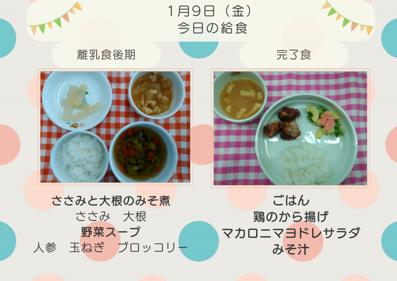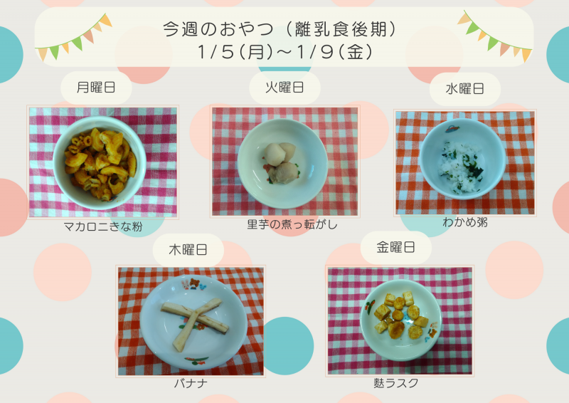 今週のおやつ1/5(月)~1/9(金)【離乳食】
