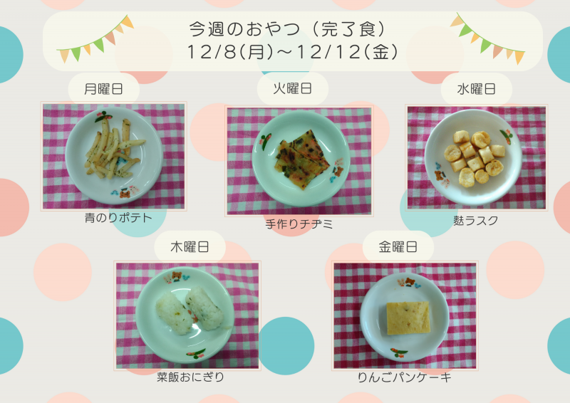 今週のおやつ12/8(月)~12/12(金)【完了食】