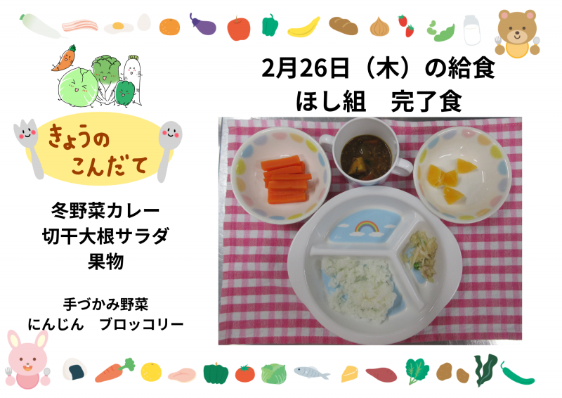 2月26日(木)の給食(ほし組)