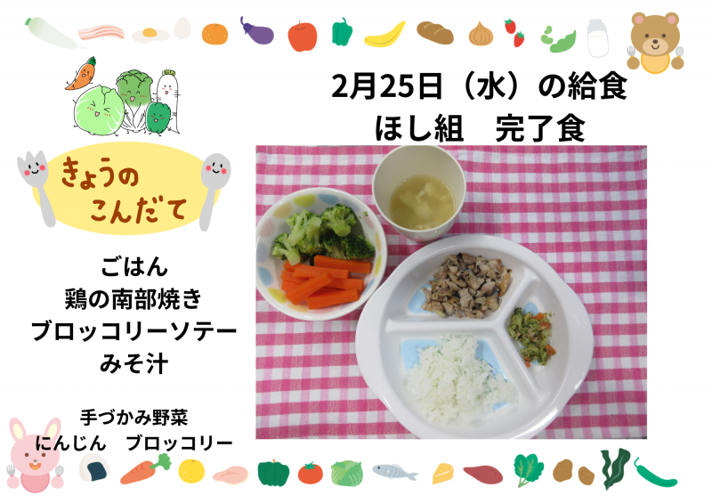 2月25日(水)の給食(ほし組)