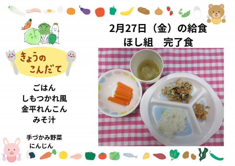 2月27日(金)の給食(ほし組)