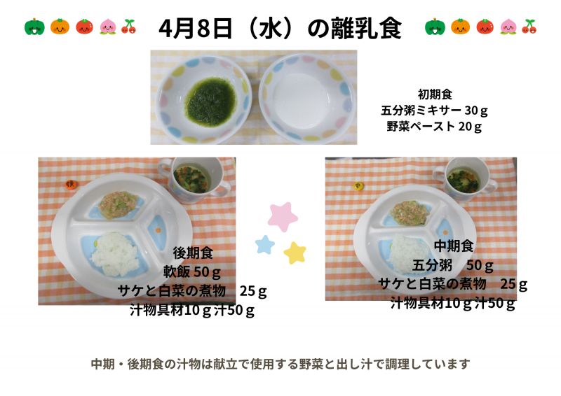 4月6日(月)~4月10日(金)午後おやつ【離乳食】