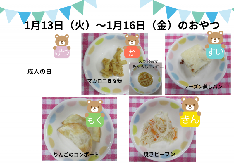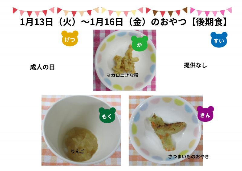 今週のおやつ【1月13日~16日】後期食